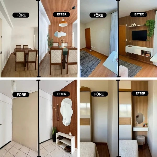PåDEKOR PANELbrinner vi för innovation inom inredningsdesign, med stort fokus på hållbar utveckling. Våra träpaneler förenar modern elegans, funktionalitet och miljöansvar. De är enkla att installera och förvandlar ditt utrymme samtidigt som de erbjuder en hållbar och visuellt sofistikerad lösning.
